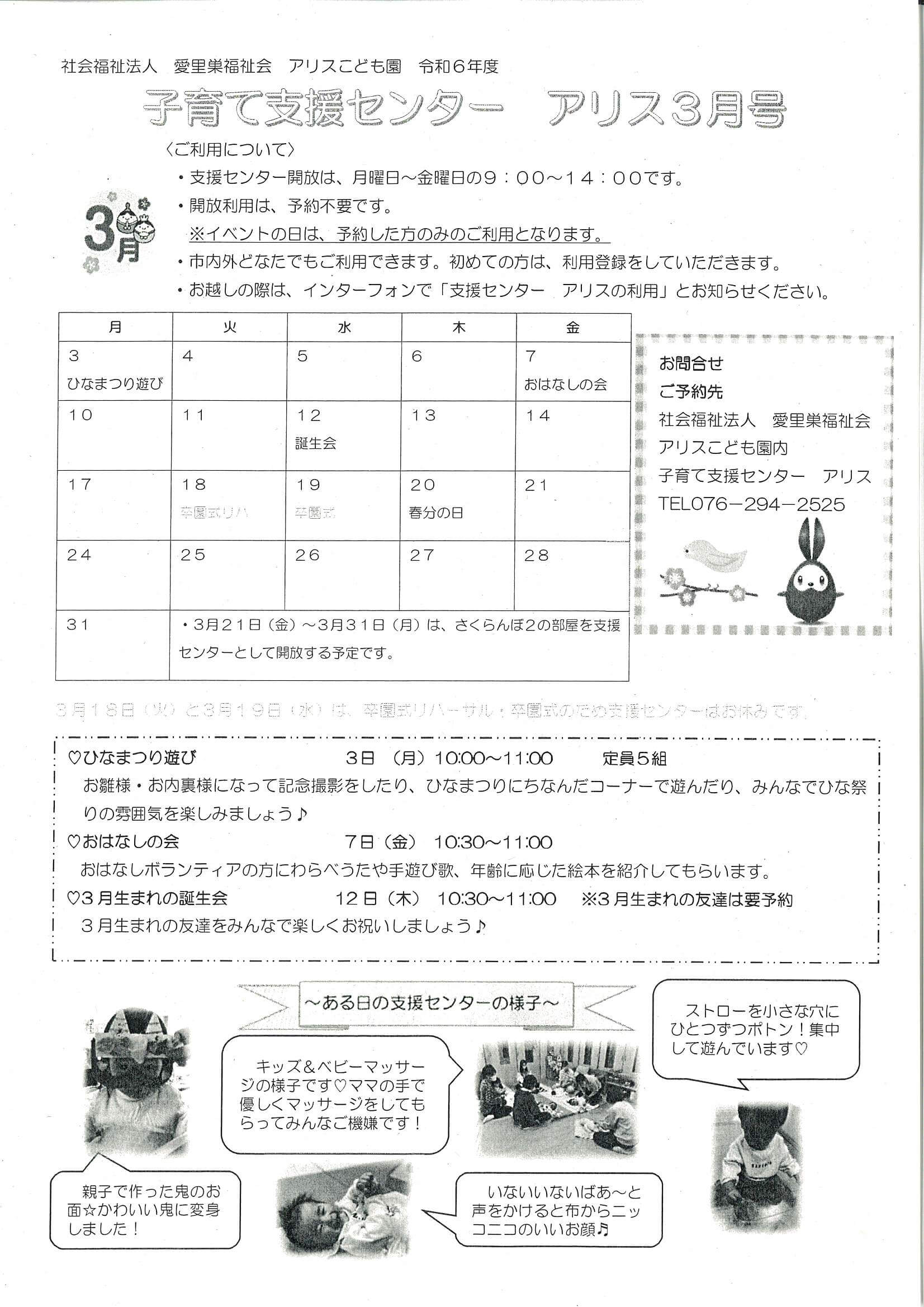 子育て支援センターアリス3月号