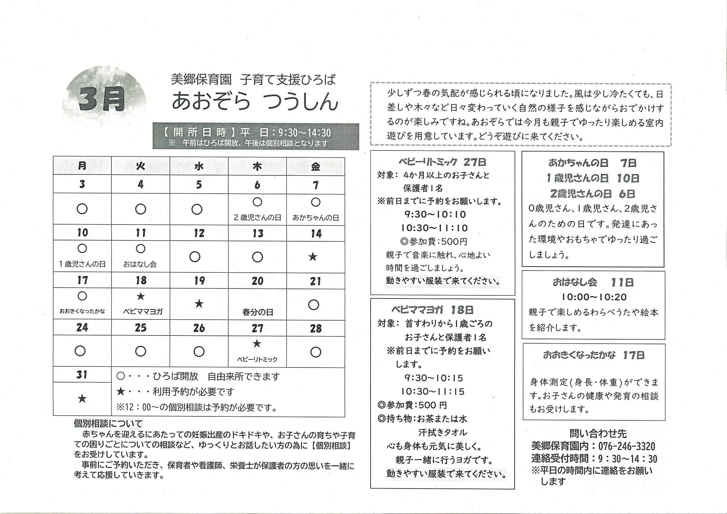 3月美郷保育園子育て支援ひろばあおぞらつうしん